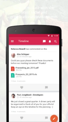 Share new knowledge, ideas and internal achievements quickly and easily with the rest of your team, department or organization. Enrich messages with pictures, videos and emoticons. Simply keep track of new posts from your colleagues, organization and partners.