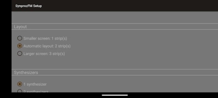 SynprezFM 2 is also a Yamaha DX7 emulator, that can render with accuracy the sysex files you upload into an external storage directory setup by menu, in order to heighten the experience. You can also create and save your own patches, either by editing one of the (deliberately) unsorted builtin ones, or starting from scratch with the 'init voice' function.